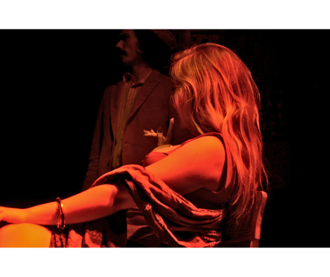 Amelia Campbell-Reidhead & Schuyler Garfield in ‘Do Actors Dream of Psycho Pigs?’, Montréal Fringe Festival 2025, Little Bird Productions, photograph by Alexia Maldonado